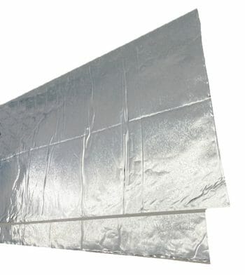 VMAX vibration and sound damping sheets are constructed of an advanced, non-curing, butylene rubber bonded to a thin layer of silver aluminum. Unlike other types of vibration damping material, VMAX sound dampening sheets have been engineered to utilize sheer force to control vibration. The thin layer of aluminum incorporated into the VMAX product will prevent a substrate from bending beyond a given point. VMAX vibration and sound damping sheets are lightweight and require no special tools to install. The VMAX sound damping sheet may be applied to sheet metal, wood, fiberglass and plastic surfaces.